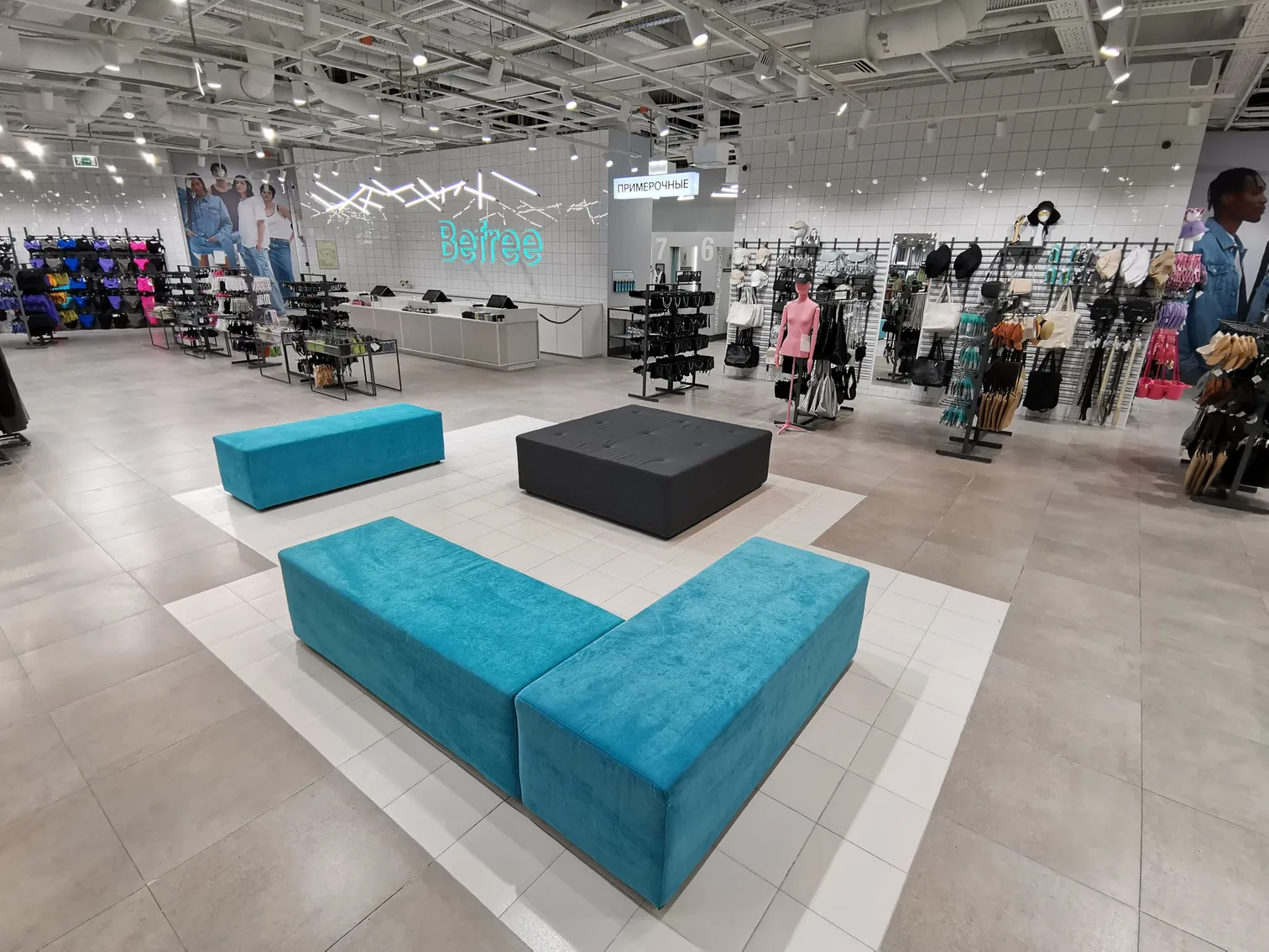 Техносфера в магазине Befree представлена системой кондиционирования, обеспечивающей индивидуальный тепловой комфорт, и энергоэффективным освещением с зонированием, позволяющим снизить количество бесполезного света и направить фокус внимания на наиболее значимые детали коллекций одежды. Приятную и безопасную атмосферу создают широкие, свободные проходы, нескользящее покрытие пола, минималистичный дизайн без лишних деталей.