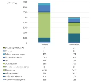 Результаты энергомоделирования Энергомоделирование показало, что проектные решения помогают сократить потребление энергии на 46%. Это очень высокий результат. Далее рассмотрим решения, которые помогли его достичь.