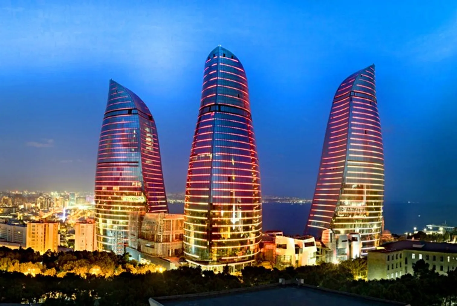 Современный архитектурный комплекс Flame Towers, ставший символом Азербайджана, расположен в столице страны городе Баку. Три башни гармонично вписываются в окружающую среду, передавая символ вечного огня с помощью вечерней подсветки – LED экранов, расположенных на фасадах.