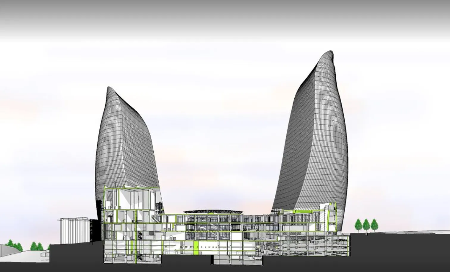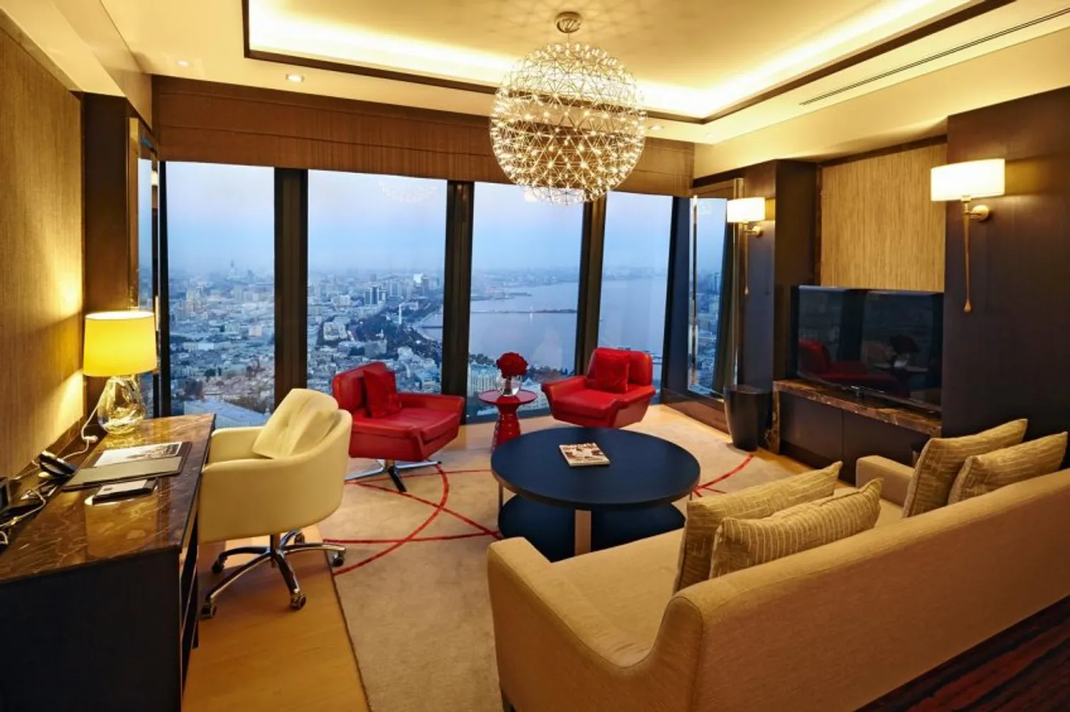 В одной из трех башен находится отель «Fairmont Baku», из окон которого открывается прекрасный вид на город и побережье Каспийского моря. Панорамное остекление номеров увеличивает количество дневного света, поступающего в помещения, благоприятно воздействуя на самочувствие гостей отеля, и позволяя меньше использовать дополнительные источники освещения.