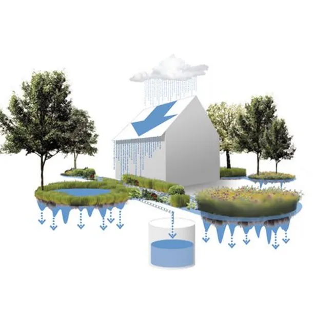 Для полива территории предусмотрен сбор дождевой воды с кровли зданий, что позволяет сократить потребление воды питьевого качества, а также снижает нагрузку на систему ливневой канализации. Резервуар для сбора дождевой воды с общим объемом 21 м3 расположен на -1 этаже в корпусе 6.