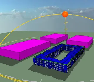 Теплопоступления от инсоляции В результате моделирования мы получаем большое разнообразие информации об энергетических процессах в здании. Например, расчет энергии солнца, поступающей в помещения через ограждающие конструкции. На визуализации справа красные помещения получают больше солнечной энергии. Фиолетовые – меньше.