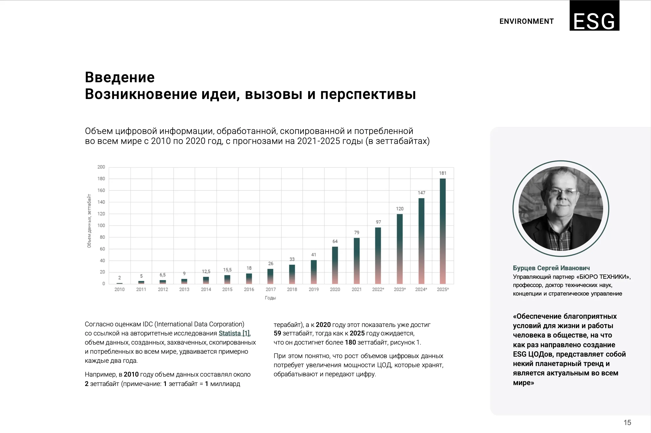 До 2030 года в России необходимо ввести в эксплуатацию ЦОДы общей мощностью 1000 МВт. Развитие искусственного интеллекта требует больше вычислительных ресурсов, а значит — больше энергии. ESG-подход превращает этот вызов в точку роста для экономики, экологии и будущих поколений.