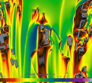 Анализ скалярных полей скоростей Анализ скалярных полей скоростей дает наглядное представление о распределении ветровых потоков вокруг здания. В ходе исследования четко визуализируются: