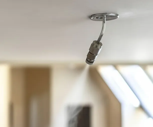 Принцип работы: Система использует воду из центрального водопровода, которая проходит многоступенчатую очистку (степень очистки составляет 99,5%). Очищенная вода подается насосом высокого давления через систему трубопроводов к распылительным форсункам-цилиндрам, установленным в помещениях. Распыление происходит через форсунки, создающие мелкодисперсный водяной туман.