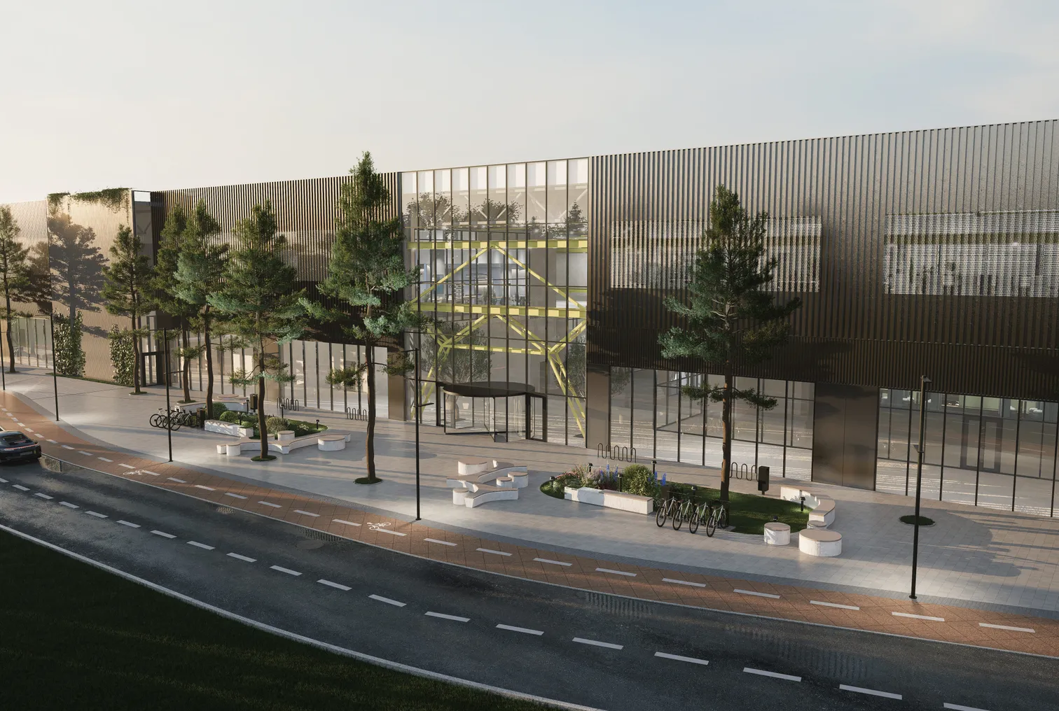 Общественные пространства наполнены озеленением и естественным светом, который проникает через большие витражи. Производственные пространства выполнены в светлых тонах, а источниками естественного света являются световоды, которые создают более равномерное распределение света, не вызывают бликов и уменьшают тени.