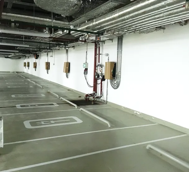 Согласно политике Сколково, автомобили с двигателями внутреннего сгорания оставляются на комплексных парковках, расположенных вдоль его периметра, а по территории самого центра можно передвигаться только на электротранспорте. Поэтому в паркинге Трансмашхолдинга предусмотрены 13 машиномест оборудованных современными зарядными станциями. Это означает, что вы можете быть уверены в том, что ваш электромобиль всегда будет заряжен и готов к новым поездкам.