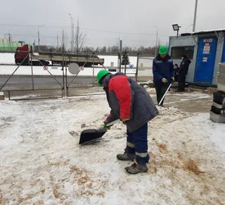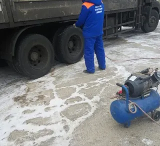В зимнее время, когда использование воды может быть затруднено из-за низких температур, применялась очистка колес с помощью сжатого воздуха. Это позволяло эффективно удалять снег, лед и другие осадки, предотвращая их вынос за территорию строительной площадки.