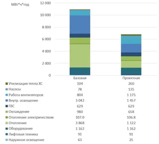 Энергомоделирование данного объекта показало, что проектные решения помогают сократить потребление энергии на 36%. Это высокий результат. Далее рассмотрим решения, которые помогли достичь его.