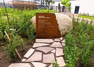 Гость из глубины веков Во дворе одного из корпусов установлен крупный гранитный валун, обнаруженный случайно в ходе строительных работ. Застройщик придерживается принципа уважительного освоения территории, поэтому было принято решение сохранить его как часть ландшафта двора.