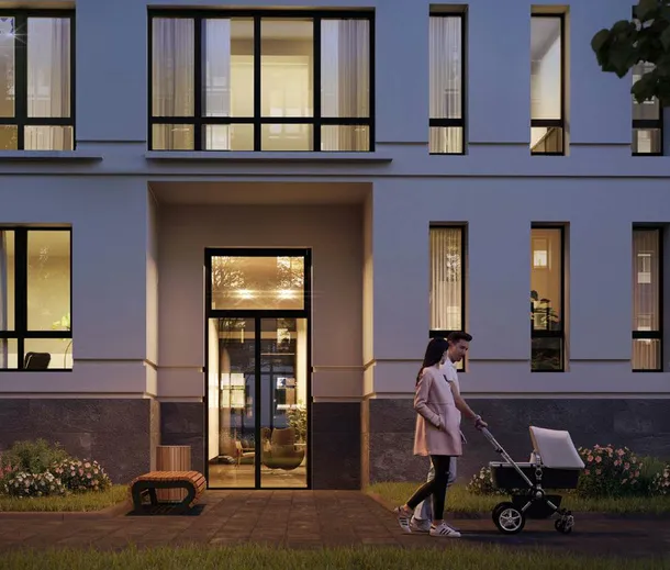 Жилой комплекс состоит из четырех корпусов высотой от четырех до шести этажей. Четыре здания образуют уютный малоэтажный квартал в неоклассическом дизайне, который распахивается в сторону городского парка.