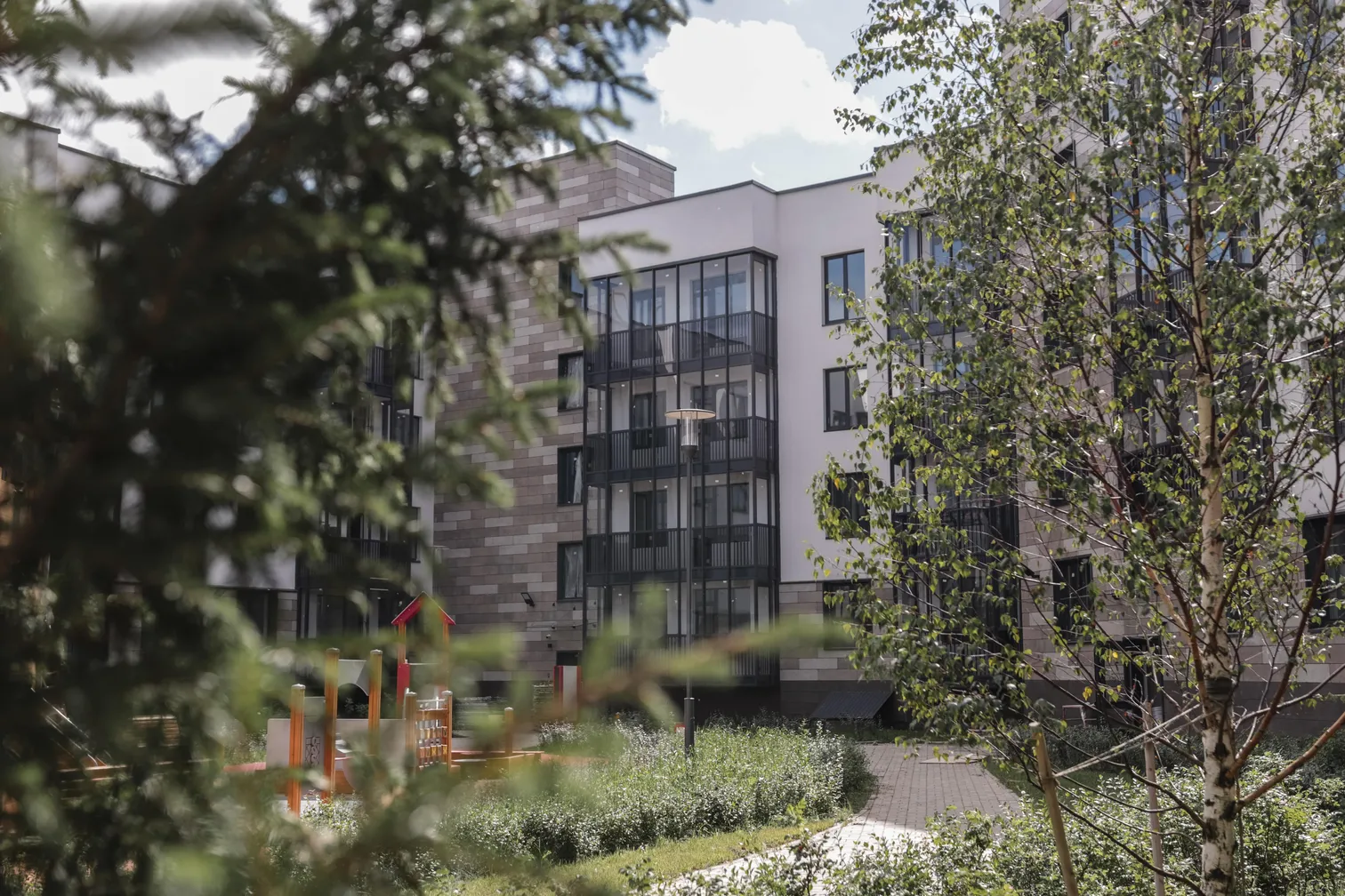 ЖК «Солнечный город. Резиденции» расположенный в Санкт-Петербурге, состоит из четырехэтажных домов с закрытым уютным внутридворовым пространством. Малоэтажные дома не закрывают обзор неба, а ландшафтный дизайн создает ощущение естественного природного окружения, привычного для данной территории, благодаря использованию в озеленении адаптивных не инвазионных видов растений. Во внутридворовом пространстве полностью отсутствует асфальтобетонное покрытие, что положительно сказывается на сокращении эффекта теплового острова.