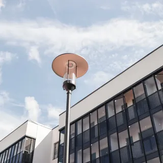 Светильники уличного освещения подобраны специально для снижения эффекта светового загрязнения, т.е. свет от них направлен непосредственно на дорожки и не рассеивается в ночном небе.