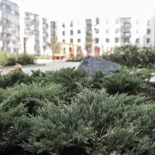 При озеленении территории комплекса были применены местные виды растений, например, можжевельник горизонтальный, ель обыкновенная, кизильник и др., что позволило снизить необходимость в дополнительном орошении, а также создало атмосферу естественной природы, характерной для данной местности.