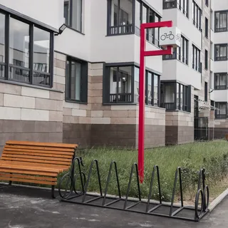 Всего на территории комплекса установлено 128 мест для краткосрочного хранения велосипедов для жителей и гостей комплекса. Для сезонного хранения жителям доступны удобные колясочные, расположенные на первых этажах каждого корпуса.